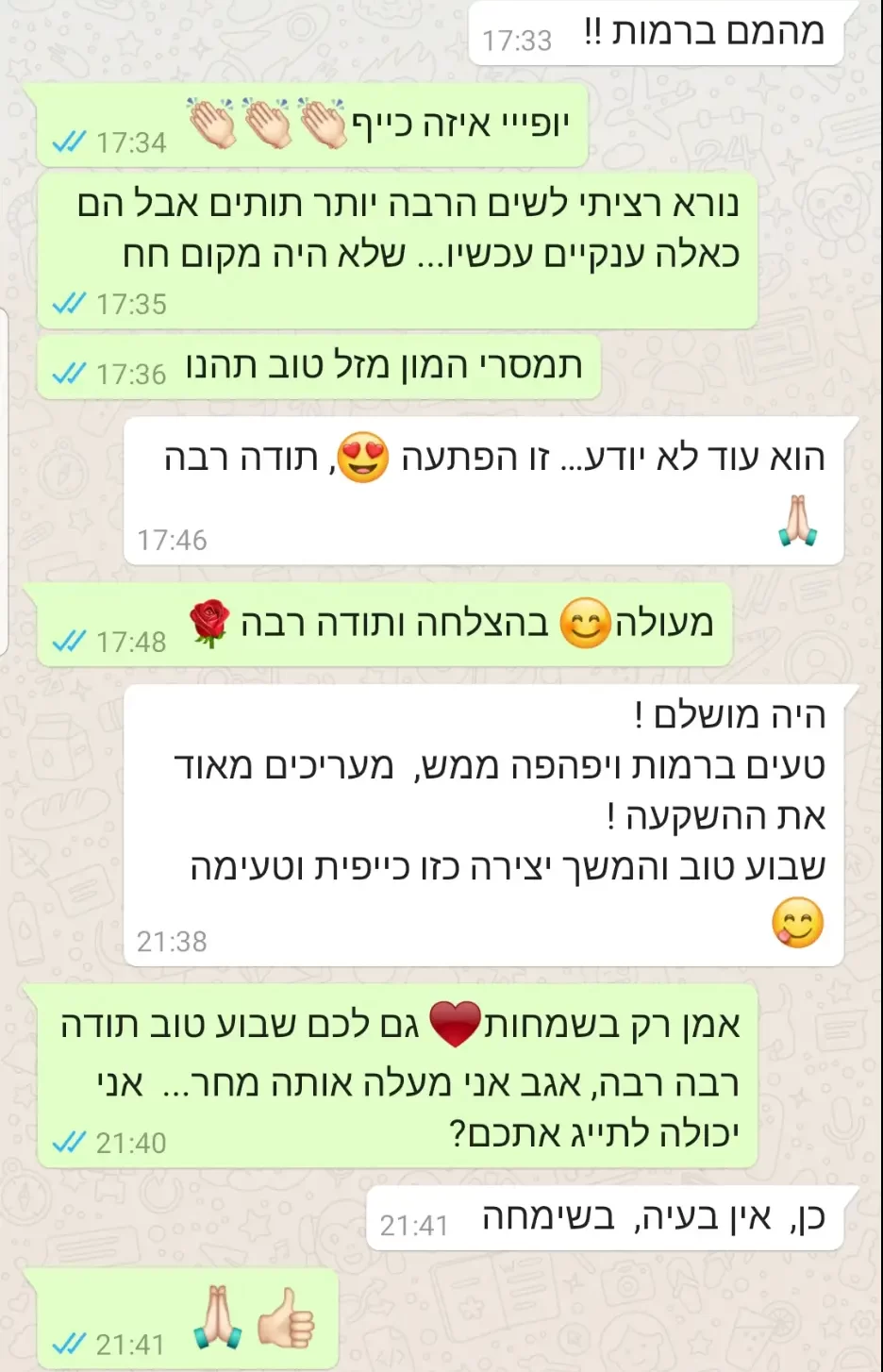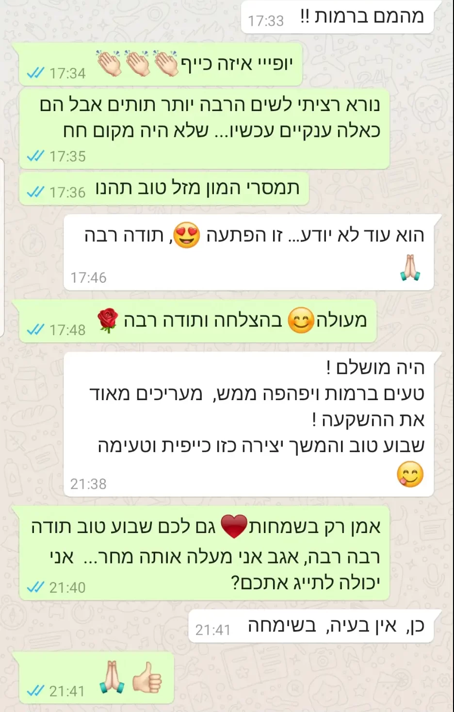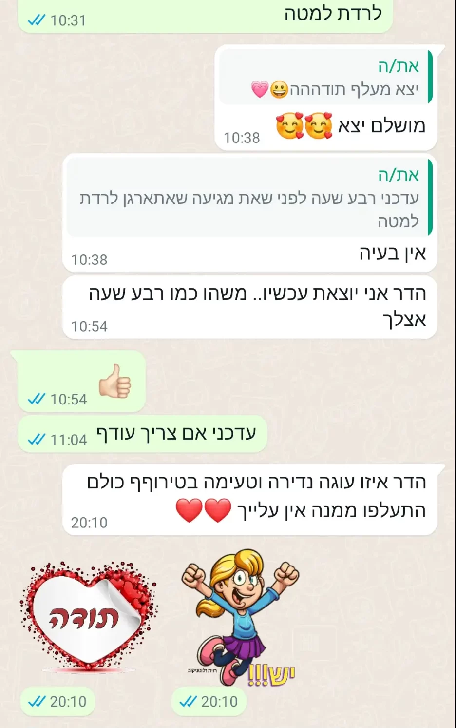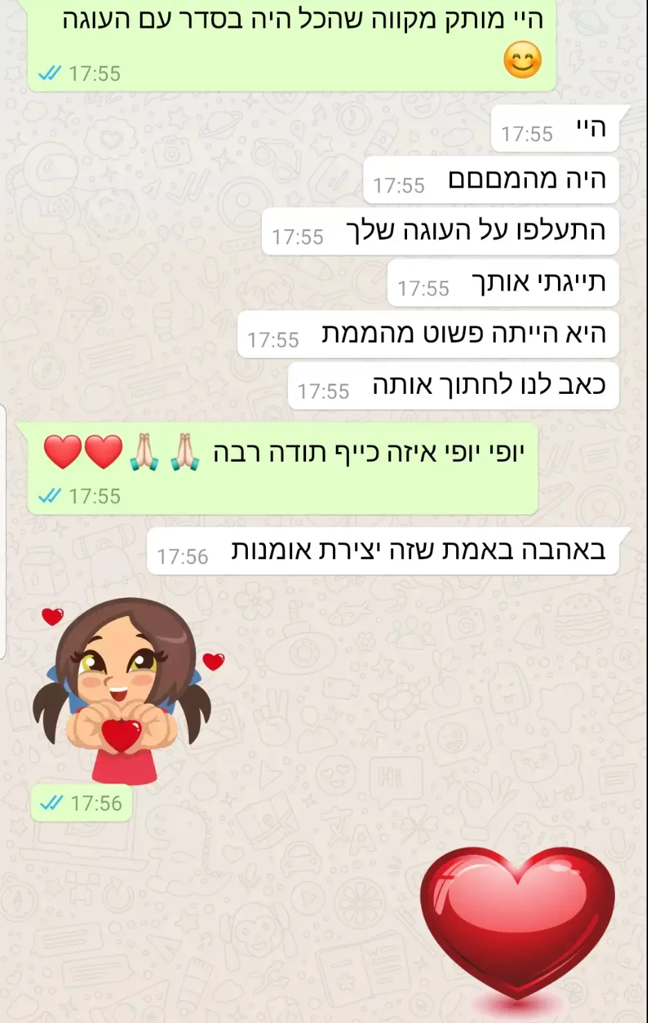 כמובן. אשמח לעמוד לשירותכם בוואטסאפ בשעות היום לתמיכה, שאלות ועזרה בכל צורך.